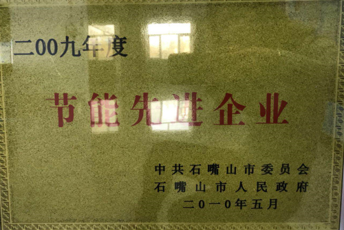 2009年被評為節(jié)能先進企業(yè)