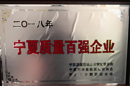 2018年被評為寧夏質(zhì)量百強(qiáng)企業(yè)