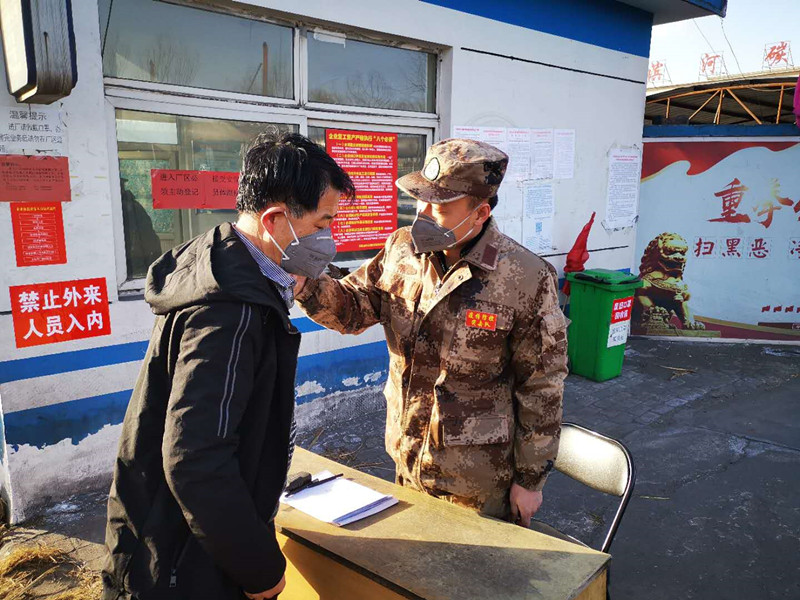 “請(qǐng)靠邊停車,我們需要給車輛消毒,請(qǐng)您下車做詳細(xì)登記并測(cè)量體溫。”11點(diǎn)半不是上下班時(shí)間,雖然偶有人車進(jìn)出,但郗余亮?xí)r刻堅(jiān)守在刺骨的寒風(fēng)中,檢查過(guò)往人員和車輛,嚴(yán)格執(zhí)行公司對(duì)新冠肺炎疫情防控的各項(xiàng)要求?!耙咔楫?dāng)前,我作為公司員工,又是民兵,有責(zé)任也有義務(wù)沖鋒在前保護(hù)全廠員工和企業(yè)的安全,為了早日戰(zhàn)勝疫情,再苦再累我都能克服?!臂嗔琳f(shuō)。